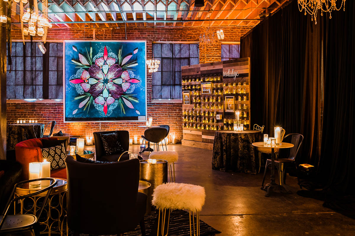 - Elegant Garden Party: Lush florals, romantic lighting, and the living texture of the moss wall create a garden-party atmosphere that doesn’t require a single step outdoors. The Edison Room’s glass ceilings are a big part of that: the natural light makes every arrangement look like it’s growing in place.